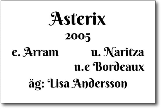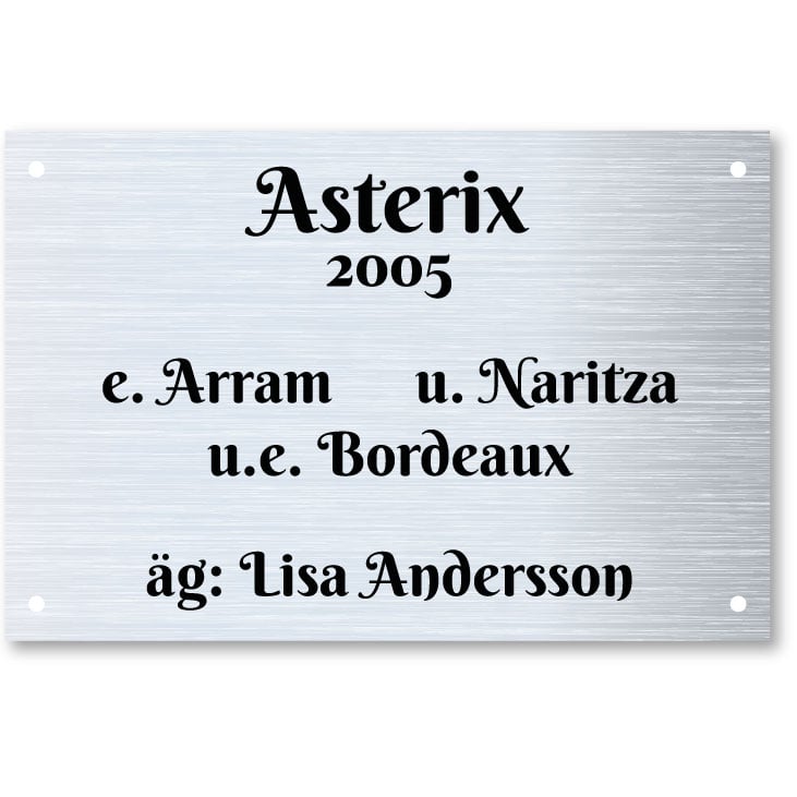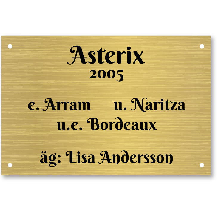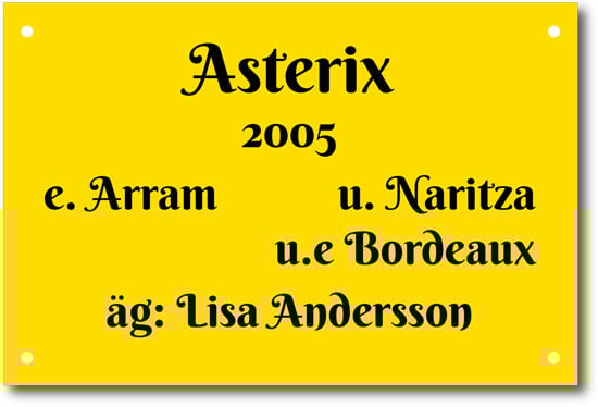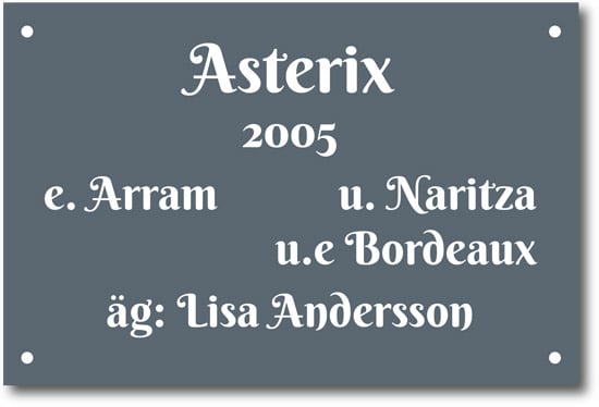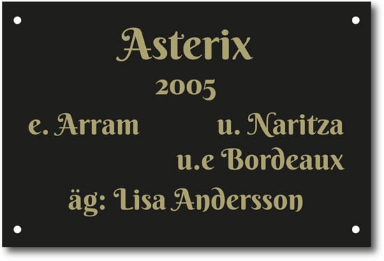 Lasergraverad boxskylt som förgyller entrén till hästboxen! Storlek: 295 mm bred x 195 hög x 1,5 m tjock Material: Laserply UV-stabil