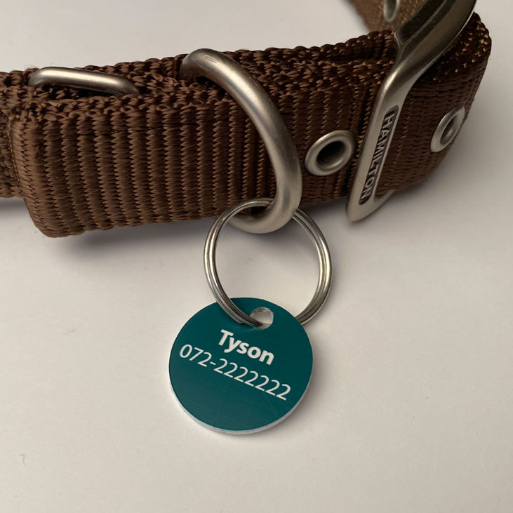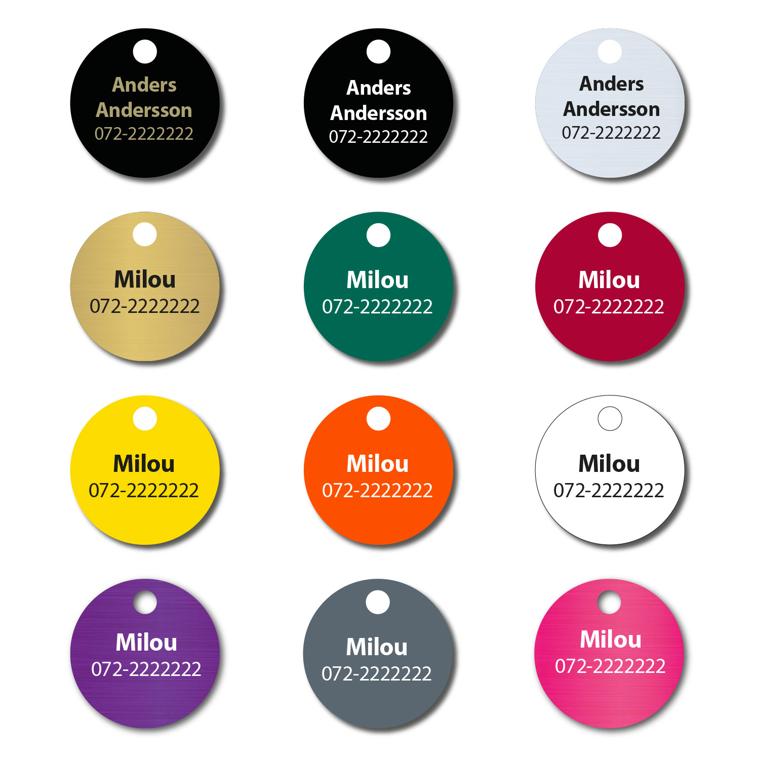 Lasergraverad hundbricka i skonsamt material – finns i många olika färger!